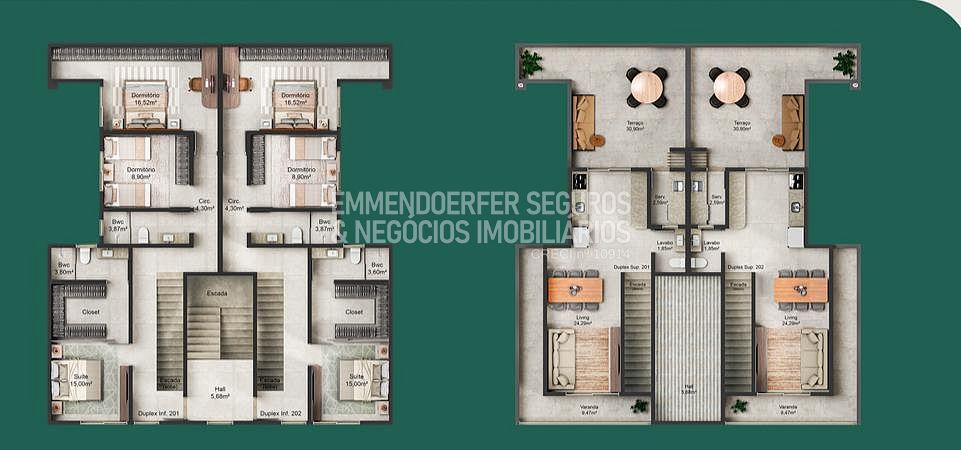 Unidades 201 e 202 Duplex com 125m² privativos, valor R$629.000,00