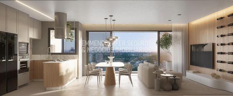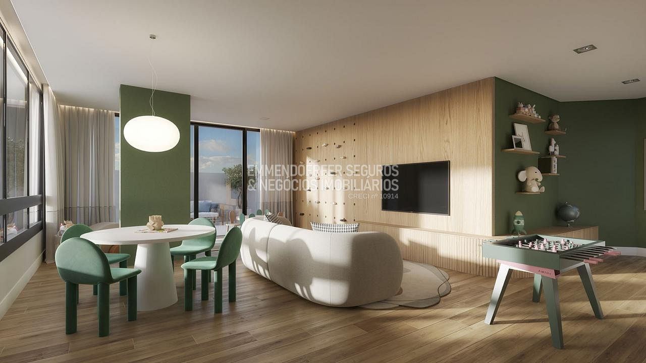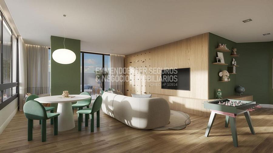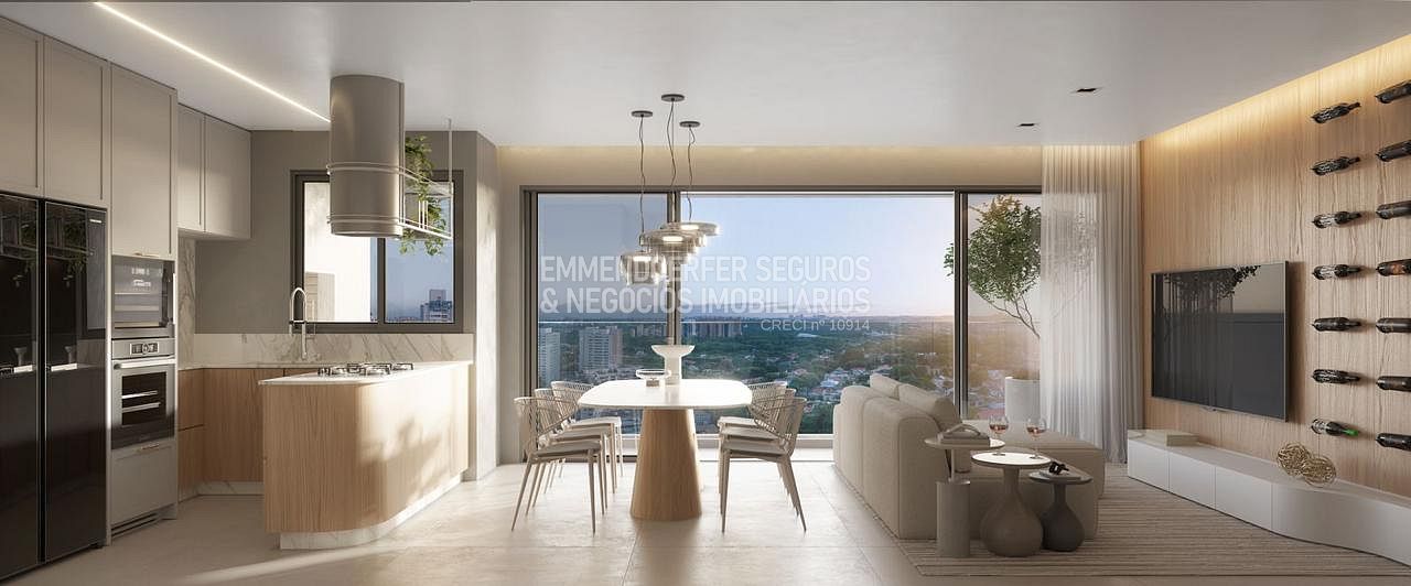Todos apartamentos com 3 suítes, living, sala de jantar, sala de estar, lavabo, sacada com churrasqueira a carvão, 2 vagas de garagem , piso porcelanato e nos quartos piso vinilico, persianas embutidas e motorizadas nas suítes , infraestrutura ma ar condicionado nas suítes e living.