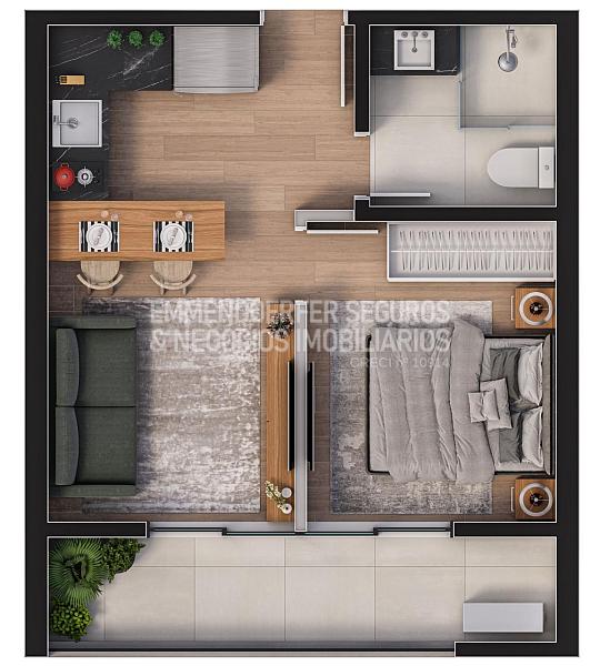 Studio com 34m²